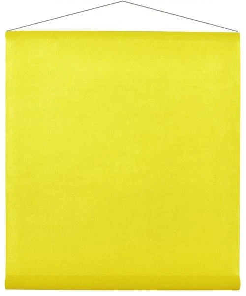Rollo de tela sin tejer de color amarillo. Puedes vestir salas o decorar jardines. Los extremos incluyen una tubo rígido de cartón con un hilo de plástico transparente para poder enganchar y mantener la forma. Mide aprox. 12m x 80cm. ** Este producto no se envía a Baleares debido a su tamaño.