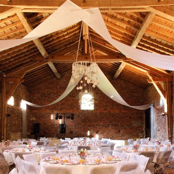 Rollo de tela sin tejer de color marfil. Puedes vestir salas o decorar jardines. Los extremos incluyen una tubo rígido de cartón con un hilo de plástico transparente para poder engancharlo y mantener la forma. Mide aprox. 12m x 80cm. Este producto no se envía a Baleares debido a su tamaño.