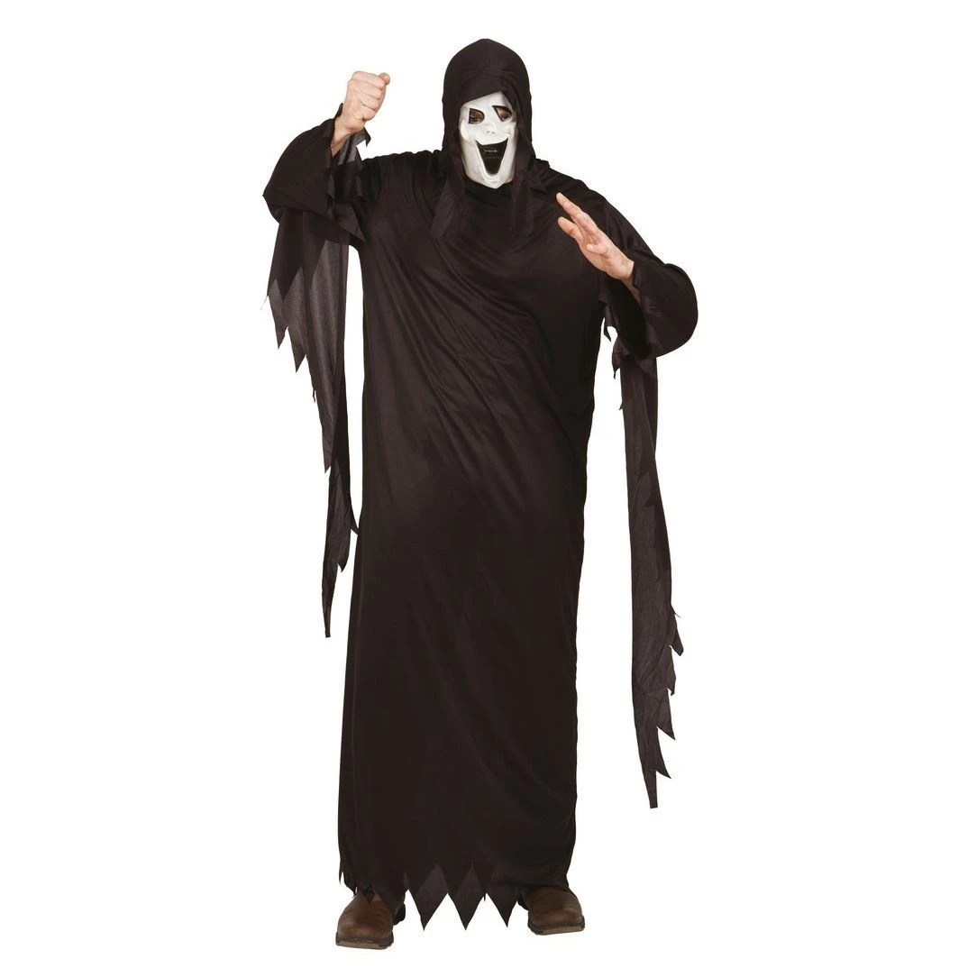 Disfraz Fantasma Asesino – Talla L/XL – Adulto Este disfraz estilo Scream en talla L/XL es perfecto para aquellos que buscan un look icónico y espeluznante en Halloween u otras fiestas de disfraces. Incluye un vestido negro, una capucha y la icónica máscara blanca con detalles negros, que es la firma de este personaje aterrador. Con este disfraz, estarás listo para asustar a todos en la fiesta y convertirte en el centro de atención de la noche. ¡Prepárate para recrear el suspense y el misterio de Scream! El tamaño L/XL asegura un ajuste cómodo y espeluznante para tu noche de terror.
