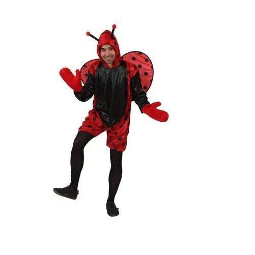 Disfraz de Mariquita. Ideal para despedidas de soltero. Contiene un mono corto con capucha, unos guantes y unas alas. Talla M-L. Medida aprox pecho 100-110, de cintura 95-105 y de cadera 105-115.