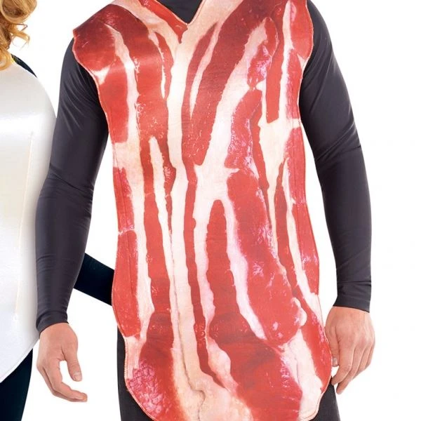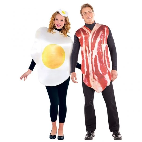 Disfrazarse nunca había sido tan divertido como con este disfraz para parejas, de huevo y Bacon. El disfraz incluye dos túnicas en tela gruesa, y una diadema a juego con el disfraz de huevo frito para ella!! Talla única. Adulto.