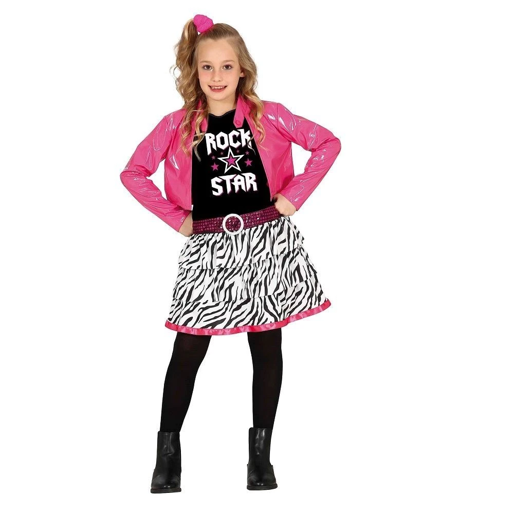 Disfraz de Rock Star perfecto para las niñas de 5-6 años que quieren lucir como auténticos músicos en su fiesta o evento. Este conjunto incluye una chaqueta Rosa fantástica y un vestido que harán que tu pequeño se sienta como una verdadera estrella del rock. Con este disfraz, tu hijo o hija podrá brillar en el escenario y animar a todos con su energía y talento. ¡Prepárate para un espectáculo inolvidable!