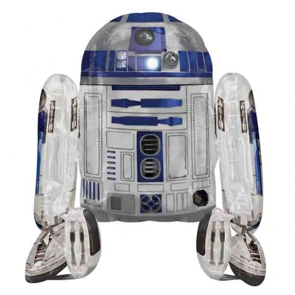 Espectacular y duradero globo de R2D2 a tamaño ¡¡¡natural!!! Imprescindible para fans de la saga. Este globo se infla con helio O CON AIRE y los pesitos de sus pies le hacen andar por la sala. Dura días y se puede volver a inflar varias veces. Inflalo mide aprox. 86cm x 96cm.