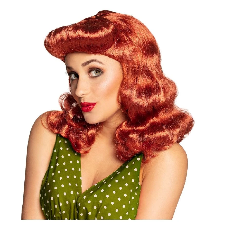 Peluca alucinante de color cobrizo estilo Pin-Up. Nos encanta la época de los 40 y 50 para hacer una fiesta temática.