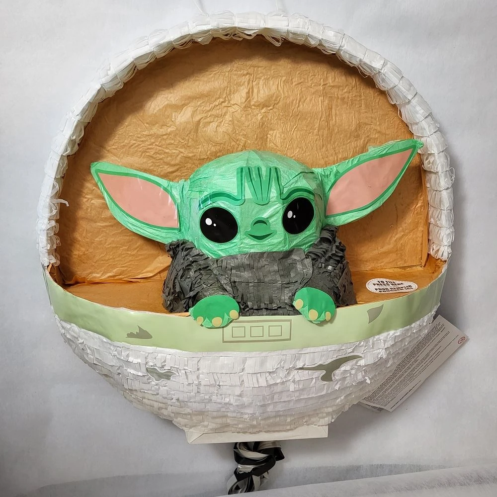 Piñata Grogu de Star Wars. The Mandalorian. Una piñata hecha a mano con el pequeño Yoda. Piñata para golpear. Super chula. Mide aprox 55.8cm x 58.4cm. Piñata perfecta para los fans de esta saga ESTE PRODUCTO NO SE ENVÍA A LAS ISLAS DEBIDO A SU TAMAÑO